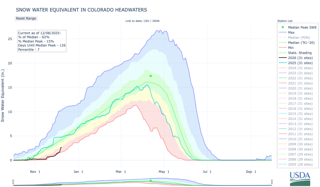 Large changes in groundwater supplies in both the Upper and Lower Colorado River Basins have been noted from soil moisture to deeper layers since 2002 (Abdelmohsen et al., 2025, Chandanpurkar et al., 2025). It is becoming increasingly clear that dry summer soils can persist into the fall and winter soaking up snowmelt the following spring thereby reducing runoff (Das et al., 2011, Lapides et al, 2022).