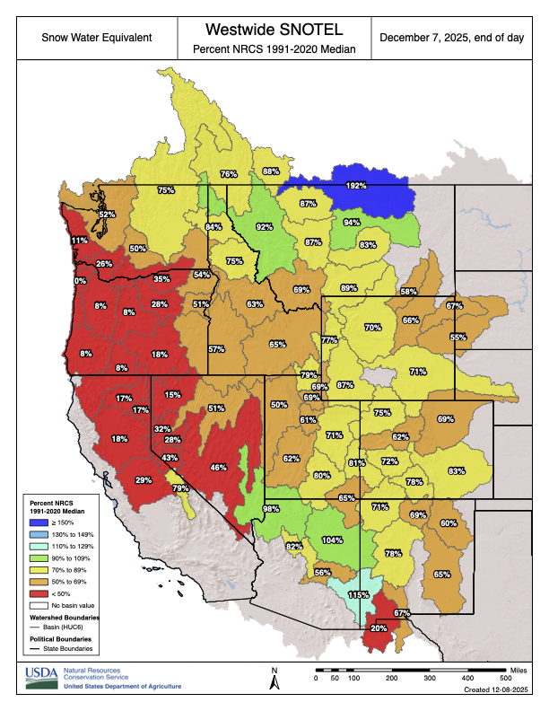 Each year one of us updates a figure3 that was first published in our 2017 paper showing the status of the Colorado River drought and its climate drivers. Weโve included this figure here, updated through the September 30th end of the 2024-25 water year (Figure 1). The combined volume of water stored in Lakes Mead and Powell has continued its decline to less than 15 maf (million acre-feet), the 26-year average naturalized flow of the Colorado River at Lees Ferry is now 12.2 maf, well below the 16.5 maf mainstem apportionments assigned to the seven Colorado River Basin states and Mexico. Critically, the 6 years since 2020 have averaged 10.8 maf/year, the same as the then-unprecedented low flows during 2000-05 at the start of this record-setting drought.