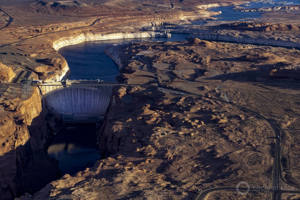 Today, the dam is threatened not by too much water but too little. In March 2023, the water level of Lake Powell dropped to within 30 feet of the minimum required for power generation, known as โminimum power pool.โ At 3,490 feet above sea level, minimum power pool is 20 feet above the generatorsโ actual intakes, or penstocks, but the damโs eight turbines must be shut down at minimum power pool to avoid cavitation โ when air is sucked down like a whirlpool into the penstocks, forming explosive bubbles which can cause massive failure inside the dam.