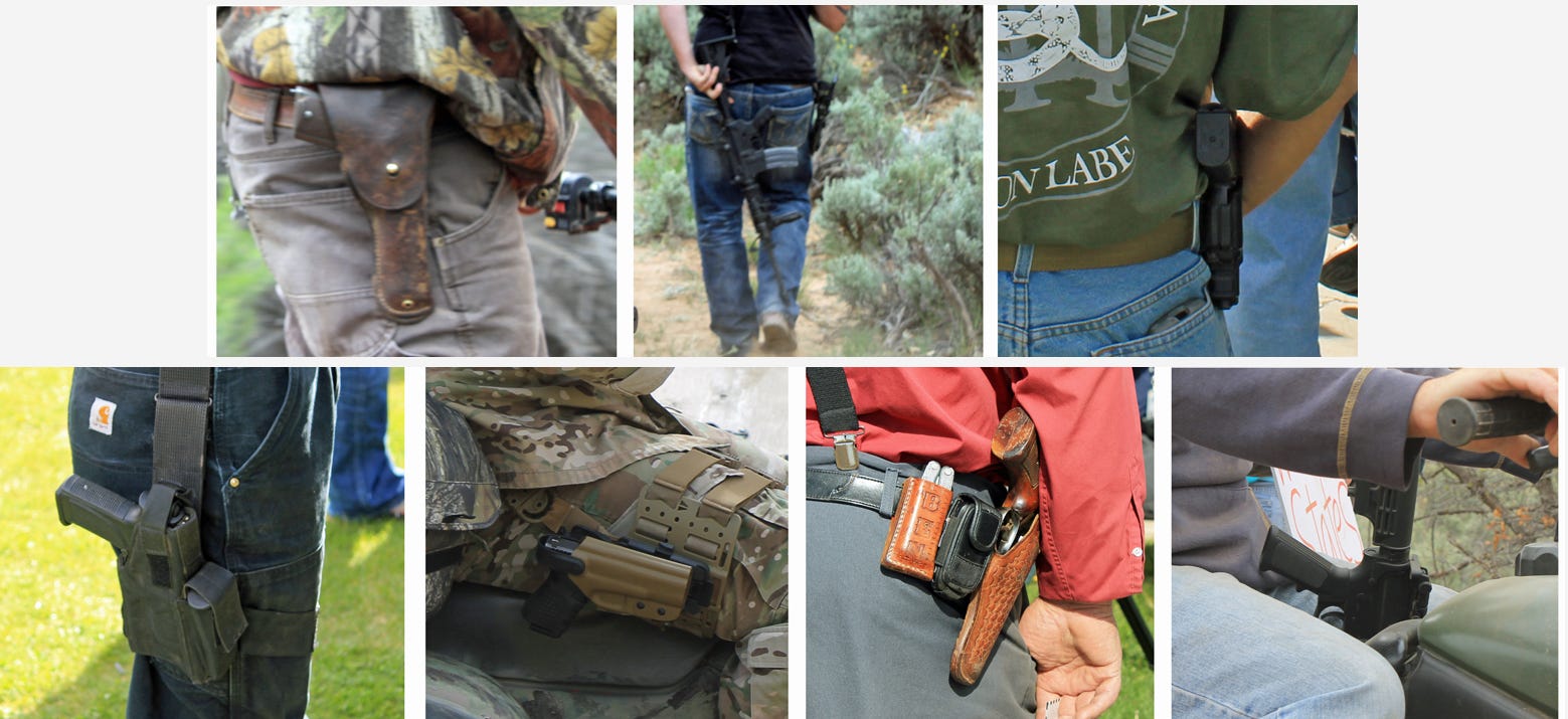 Speaking of hypocrisy: Iโm sure most of you have heard Trump administration officials saying that federal ICE and/or CPB agents shot Alex Pretti because he brought a gun to a protest. The photos below were all captured at the May 2014 Recapture rally in Blanding, Utah. Quite a few of the attendees โ who were on hand to protest โfederal overreachโ โ were armed. None of them were shot. Just sayinโ.