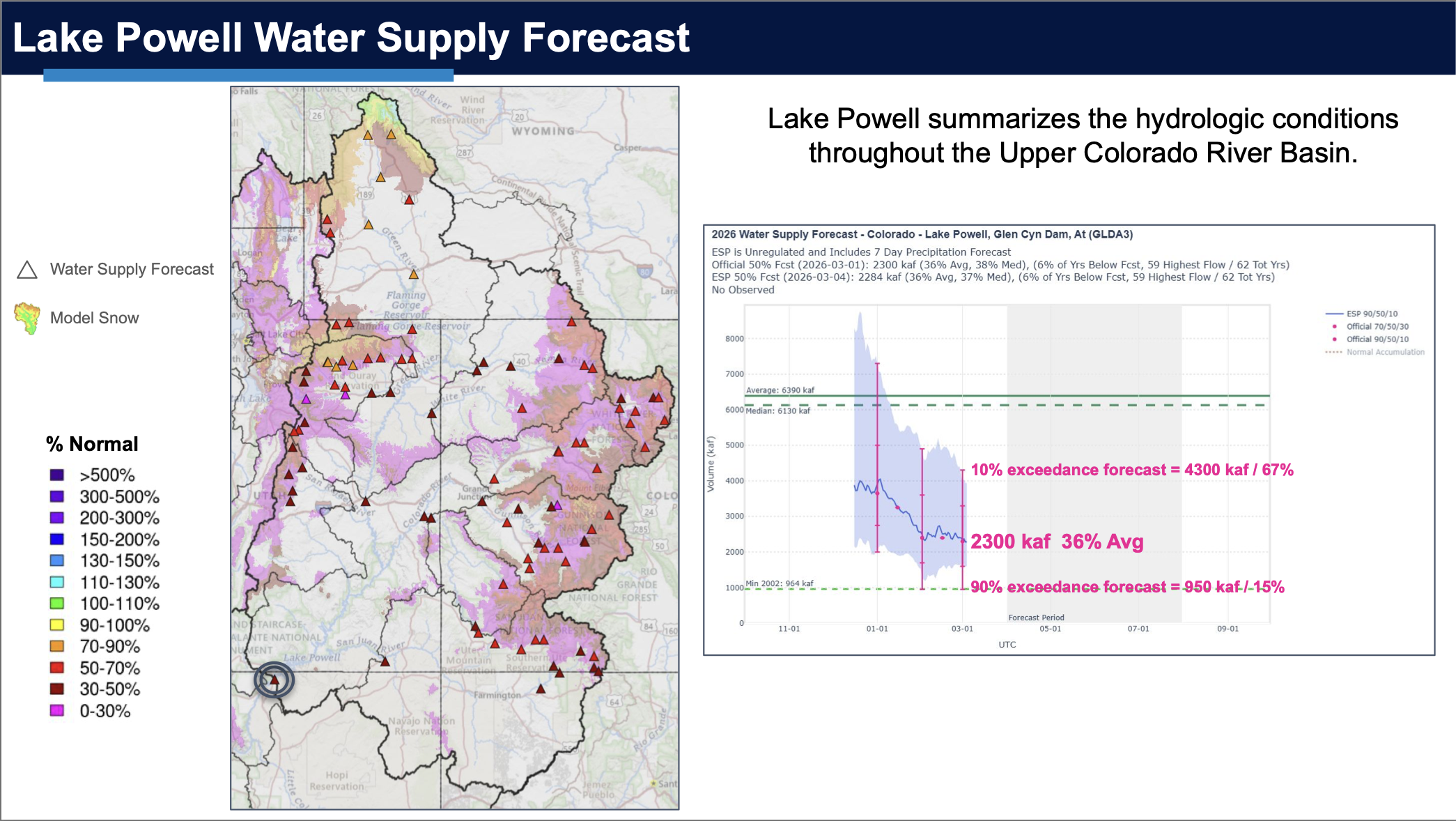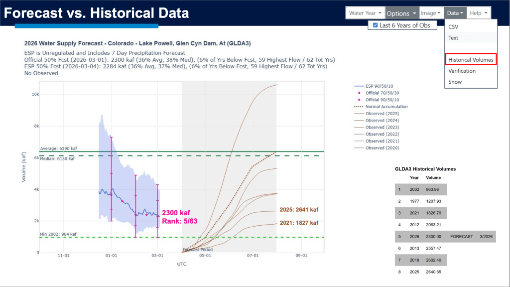 โDespite better snowfall in February, the most probable forecast remains bleak at 36% of average,โ he said on LinkedIn. That, he added, would put runoff in the observed flows into Powell in 2012, 2013, 2018, 2021, and 2025. โIn other words, a bad neighborhood,โ he said.
