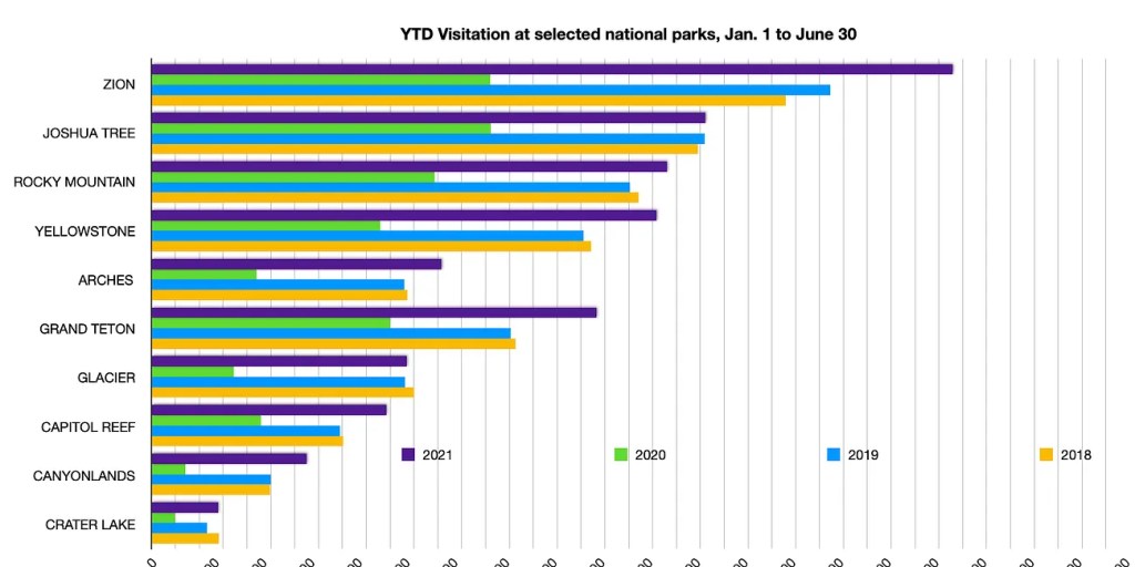You wanna know how old I am? Iโm old enough to remember, way, way back to the days of yore, when federal officials and gateway-town chambers of commerce were wringing their hands in concern over a nationwide decline in visitation to national parks. Over a 13-year period, visitor numbers to 58 โnature-basedโ national parksโArches, Yosemite, Yellowstone, โฆ