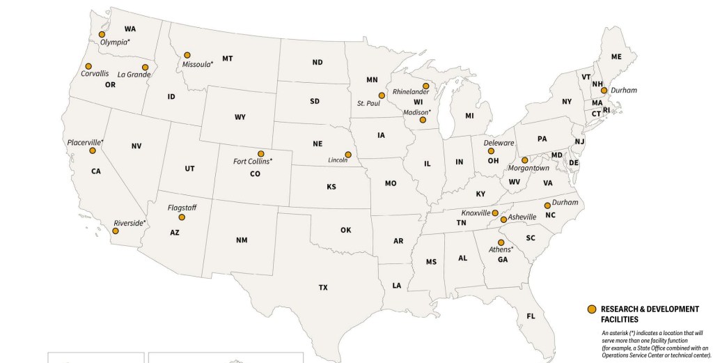 Which research facilities will survive the overhaul (below). Source: USDA.