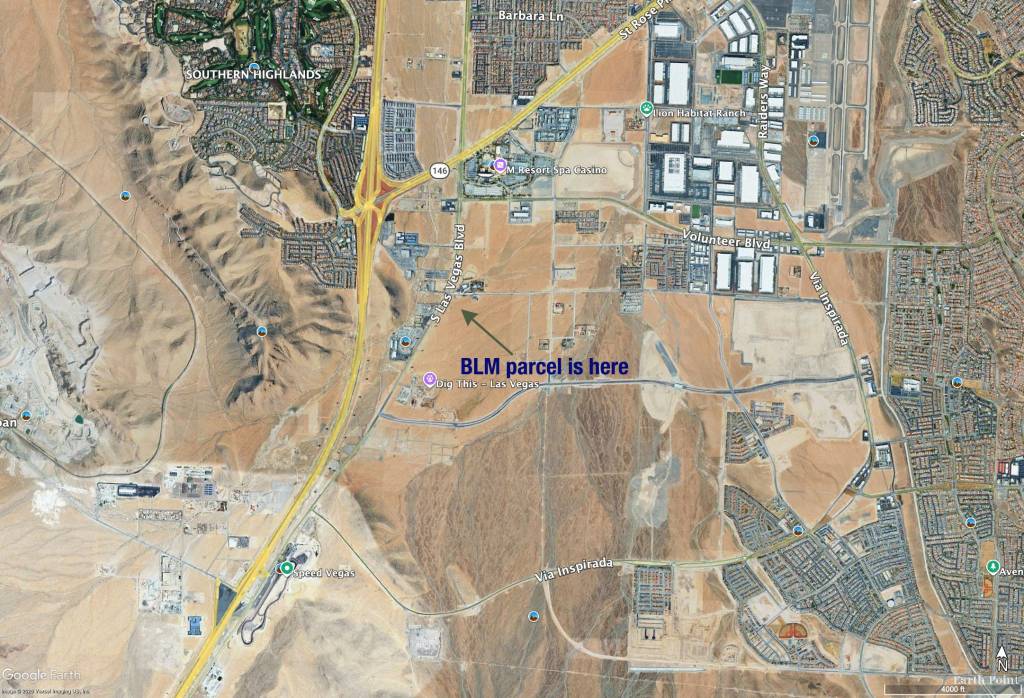 That said, Iโm curious about the choice of this particular parcel, more from an urban planning perspective than a public-land-transfer one. This is not one of those tracts surrounded by suburbia, but lies on the suburban fringe. Itโs not in an existing neighborhood or even all that close to one and is beyond the reach of the bus line. Itโs across the street from Combat Zone Paintball and a huge RV sales center and just up the road from Dig This Vegas, a โheavy equipment playground.โ