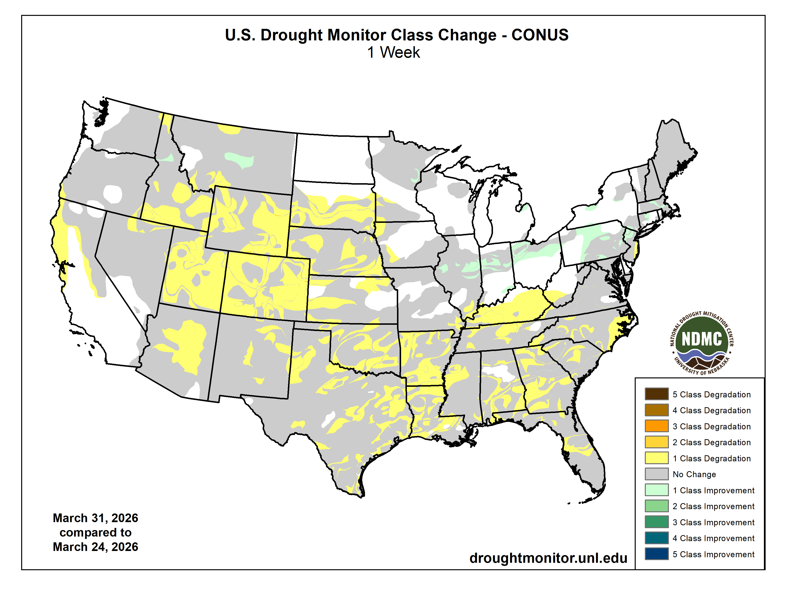 โDrought conditions worsened or developed for much of the Great Plains, Lower Mississippi Valley, and Southeast U.S. due to warmer and drier than normal conditions this winter,โ said Jon Gottschalck, chief of the Operational Prediction Branch, NOAAโs Climate Prediction Center. “Drought is likely to persist across much of the West while developing in parts of the Pacific Northwest, Great Basin, central Rockies and Southwest. Dry conditions are expected to improve for some areas in the Midwest and Atlantic seaboard.โ