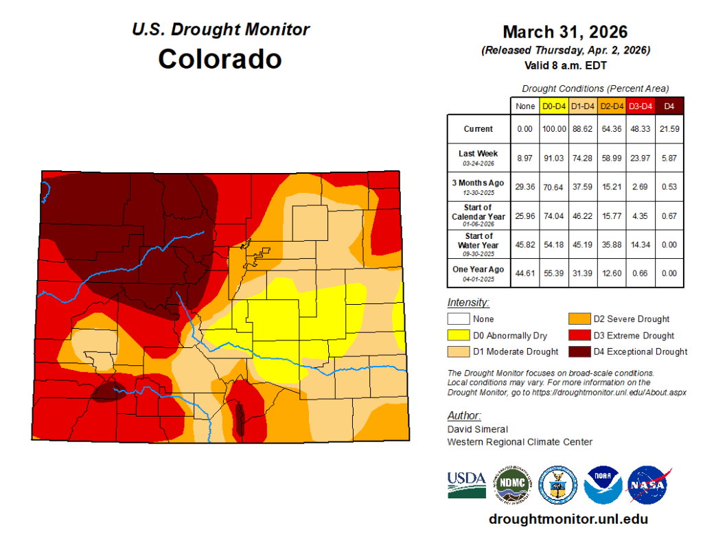 Throughout Colorado a record-warm and dry winter has come to a close. Attention now pivots to spring and the potential for additional snow to allay increasing drought concerns. Though, there appears to be little relief in sight.