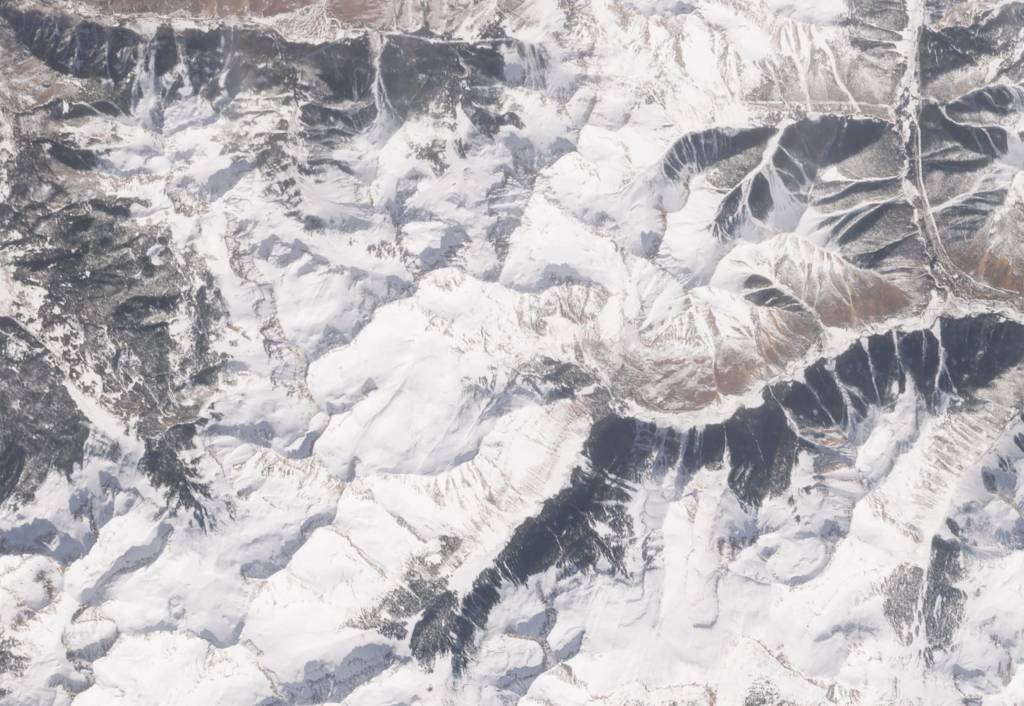 Ice Lake Basin (just below center) and the South Mineral Creek drainage west of Silverton (which is just off the right side of the image) on Feb. 27, 2026. This was the peak of this winterโs snowpack in the Animas River watershed, about five weeks ahead of โ and less than 50% of โ the normal peak.