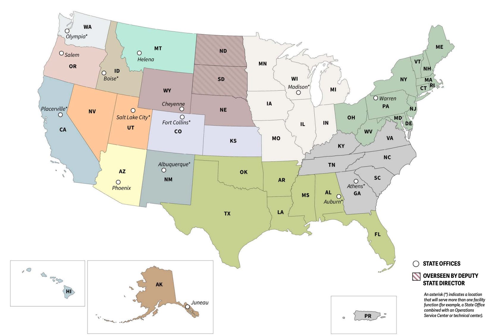 These maps show where the new state offices will be after the reorganization is complete. Source: USDA.