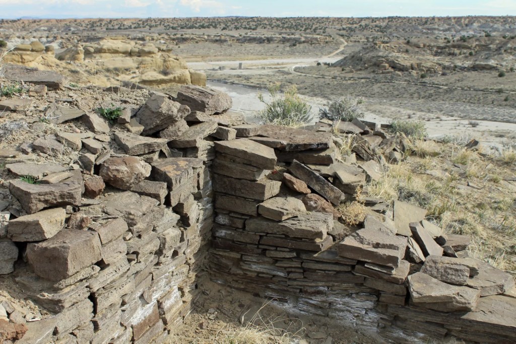 Pierreโs Site, a Chacoan great house about nine miles north of the parkโs boundary, illustrates this concept. The site is made up of a collection of thick-walled stone structures built among and in harmony with distinctive shale and sandstone buttes and bluffs. That โpage,โ or the structures and their immediate surroundings, has been kept intact by the aforementioned protections. But a cluster of well pads, along with pumpjacks, tanks, and associated infrastructure sit less than a half-mile away, and they are visible โ and their whir-pop-whir sounds audible โ from the site. They not only affect the way one experiences Pierreโs, but also have surely erased some of the important context.