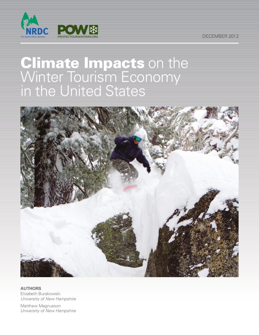 And climate change will spell more trouble, according to research done for the Natural Resources Defense Council (NRDC) and Protect Our Winters (POW), for all businesses dependent on winter weather from snowmobiling, snowboarding, and ice fishing to snowshoeing and skiing — as well as the other related sectors that depend on winter sports tourists, such as restaurants, lodging, gas stations, grocery stores, and bars.
