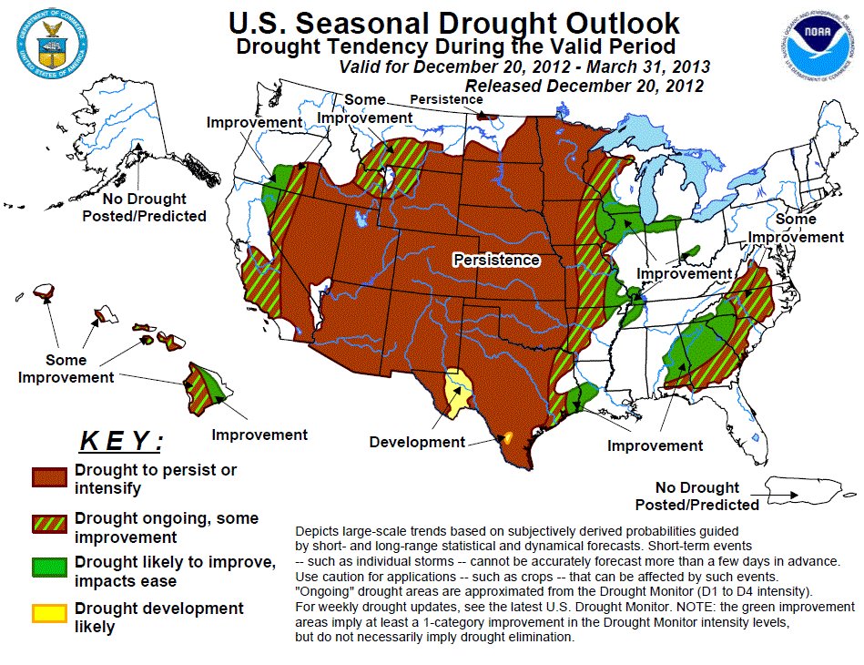 The 2012 drought is the combination of a dry fall and high temperatures early in the spring. With the hotter than average temperatures in March, many plants began emerging earlier than usual. This premature start used up the little soil moisture that was available, setting the stage for severe water shortages later in the summer.