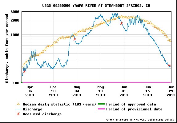 Runoff news: The Yampa River is flowing at 213 cfs, well below normal #COdrought