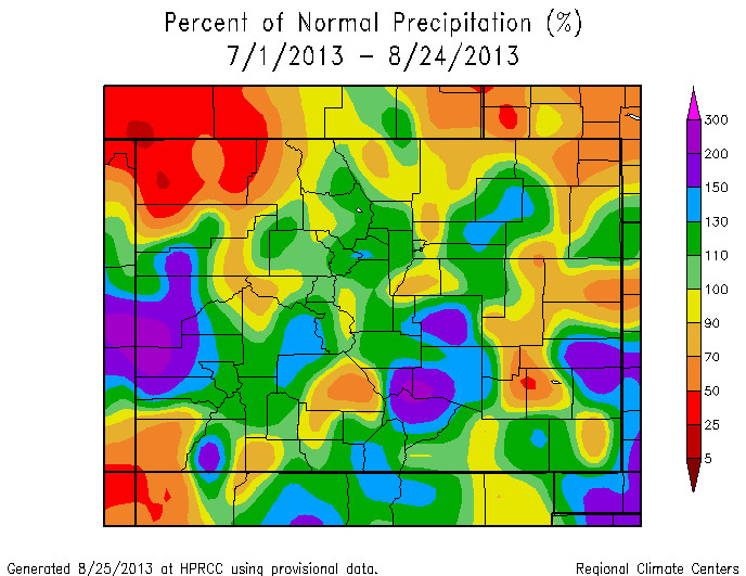 No one is ready to declare Colorado’s drought over but things have improved over a lot of the state. Click on the thumbnail graphic for the water year 2013 precipitation as a percent of normal map of the Upper Colorado River Basin from the Colorado Climate Center. Click here to go to their webpage for the drought discussion. Click here for the current assessment.