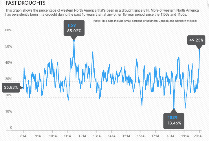 The dryness in California is only part of a longer-term, 15-year drought across most of the Western USA, one that bioclimatologist Park Williams said is notable because “more area in the West has persistently been in drought during the past 15 years than in any other 15-year period since the 1150s and 1160s” ā that’s more than 850 years ago.