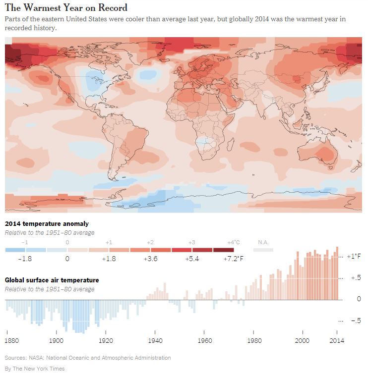 Breaking: It’s official — 2014 was Earth’s warmest year on record, per @NOAANCDC & @NASA http://t.co/hHhiuMTDNB pic.twitter.com/TriIV0P0Cx