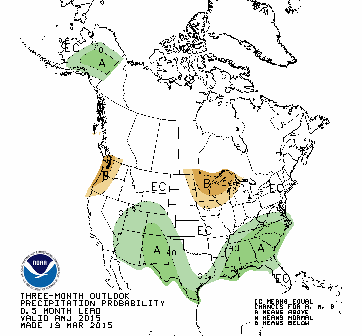 Looking further out through the end of the month, warmer than normal temperatures continue their dominance in the West, while a series of short-wave impulses support cooler than normal temperatures in the Northeast. The Climate Prediction Center precipitation probabilities are below average for the West, Southwest and Deep South. Above average probabilities are forecasted for the Northwest, Upper Plains and East Coast.