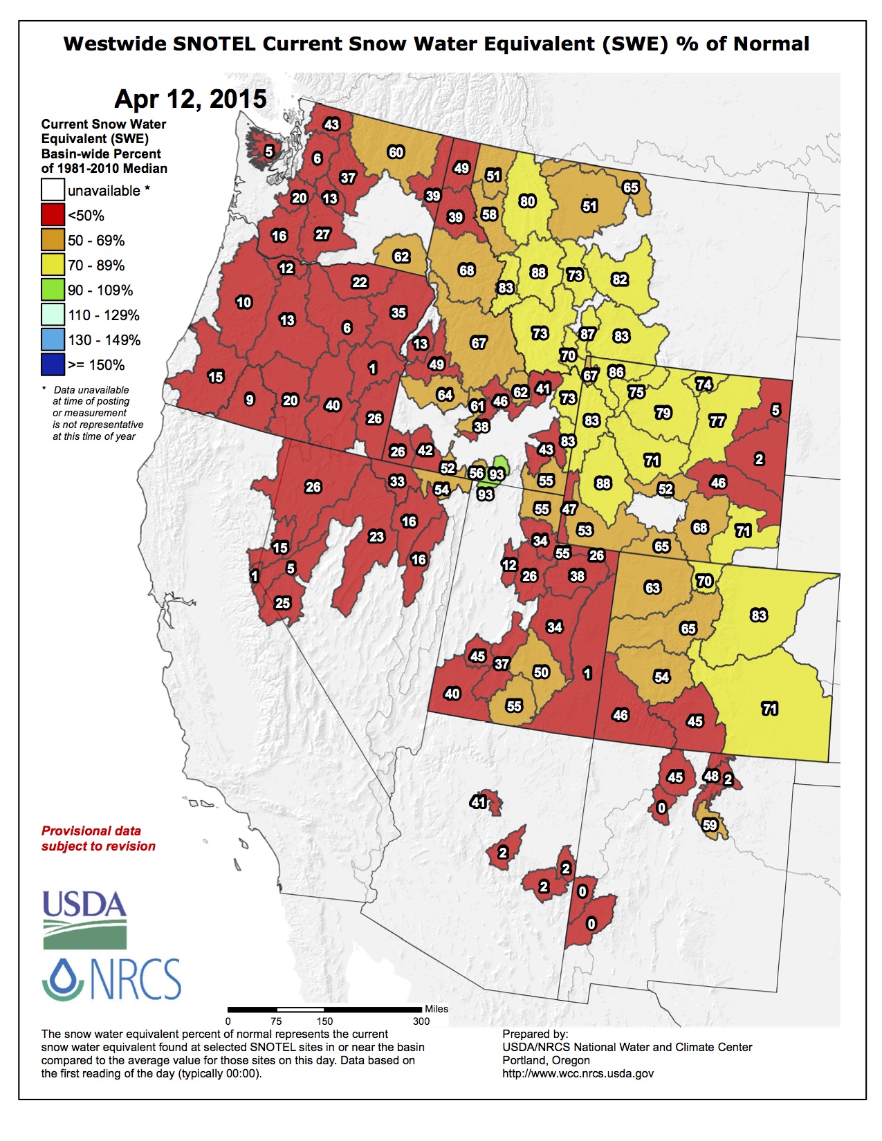 Statewide snowpack recorded on Wednesday, April 8, was 65 percent of normal, down from 87 percent last month, according to SNOTEL and snow course observation sites. That means this year’s snowpack ranks third from the minimum year of 2002 in a 30-year period of record.