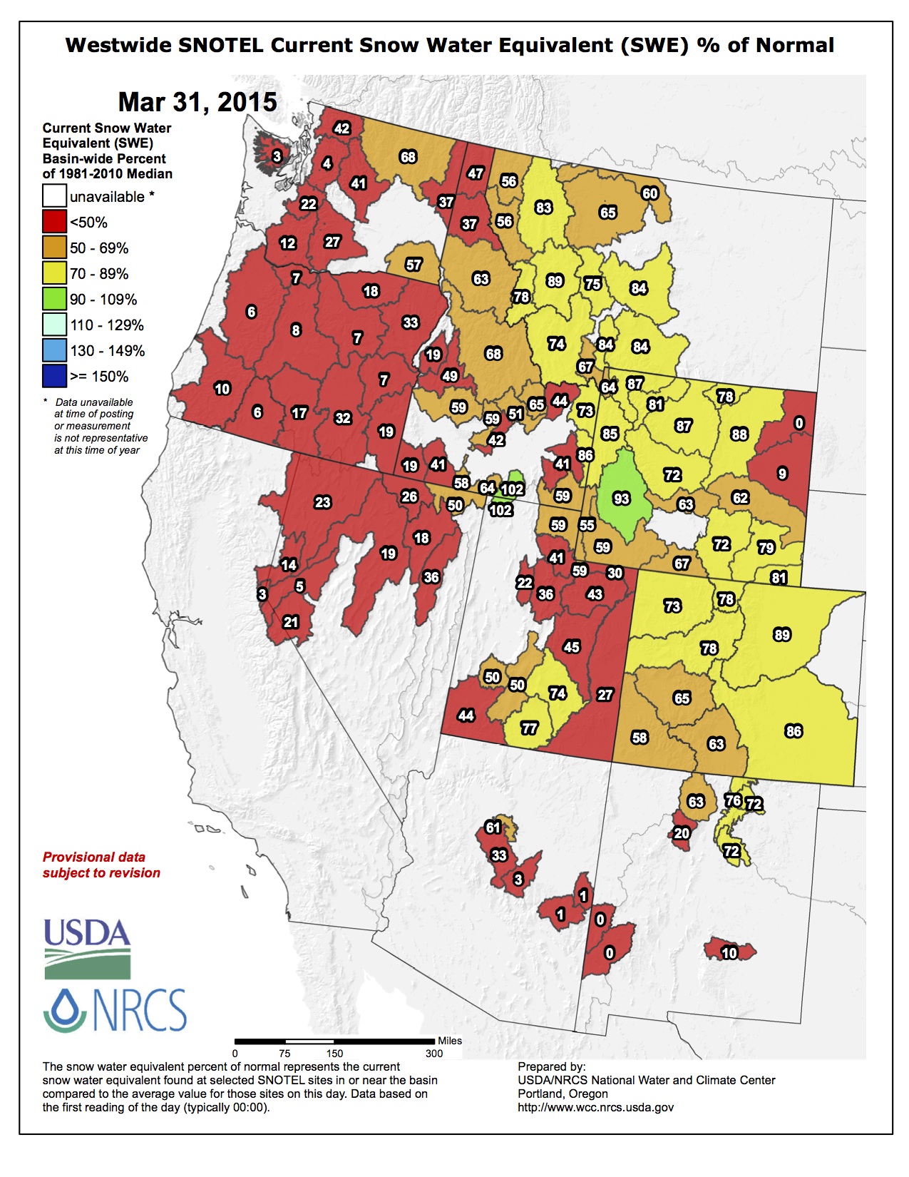 Statewide snowpack map April 2, 2015 via the NRCS