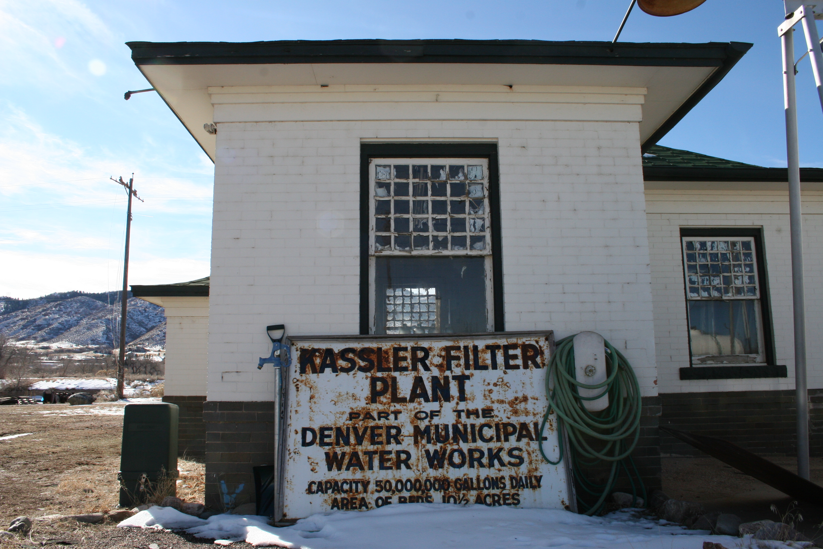 Construction on the Kassler system began in 1901. But its distance from Denver, and the fact it had to be in operation around the clock, meant workers needed to be close by. Thus was born the town of Kassler. Workers built a boarding house, a bunkhouse, and eight single-family rental cottages, since it wasn’t only single men who worked at Kassler. They also built an administration building, a barn for the horses and a blacksmith, a schoolhouse with room for eight grades, and something called a measuring house, where engineers governed how much water was pouring down the pipes.