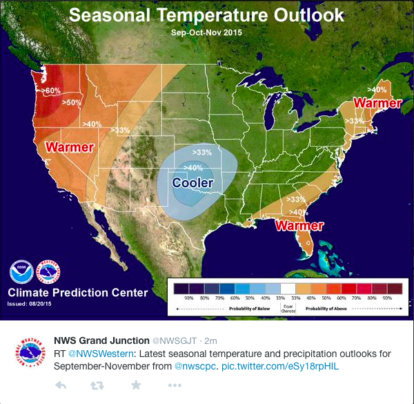 NOAA: Seasonal precipitation and temperature outlooks through November 30 Share this: Share on Bluesky (Opens in new window) Bluesky Share on LinkedIn (Opens in new window) LinkedIn Share on Facebook (Opens in new window) Facebook Email a link to a friend (Opens in new window) Email Print (Opens in new window) Print Share on X (Opens in new window) X Like this:Like Loading...