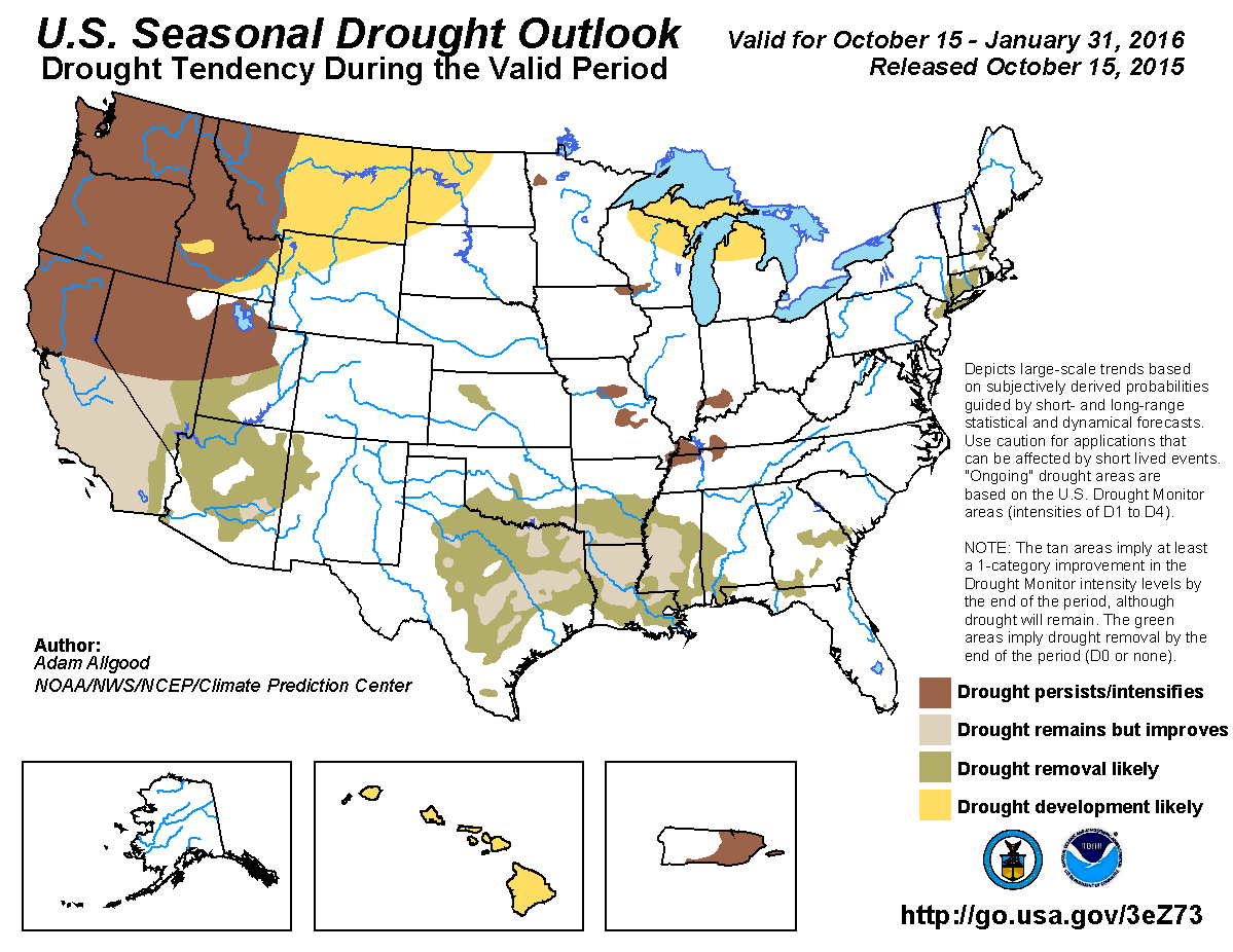 While it is good news that drought improvement is predicted for California, one season of above-average rain and snow is unlikely to remove four years of drought,ā said Halpert. āCalifornia would need close to twice its normal rainfall to get out of drought and that’s unlikely.ā
