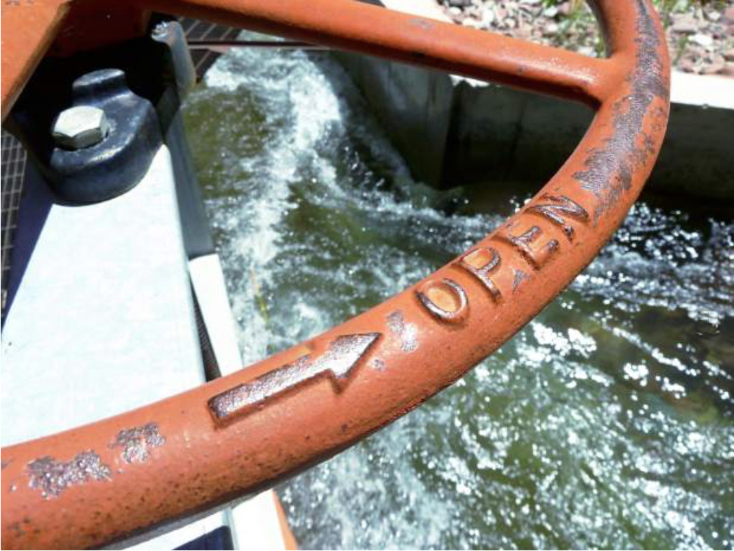 Gears on the top of the dam that forms Lost Man Reservoir, part of the diversion system on the upper Roaring Fork River headwaters.