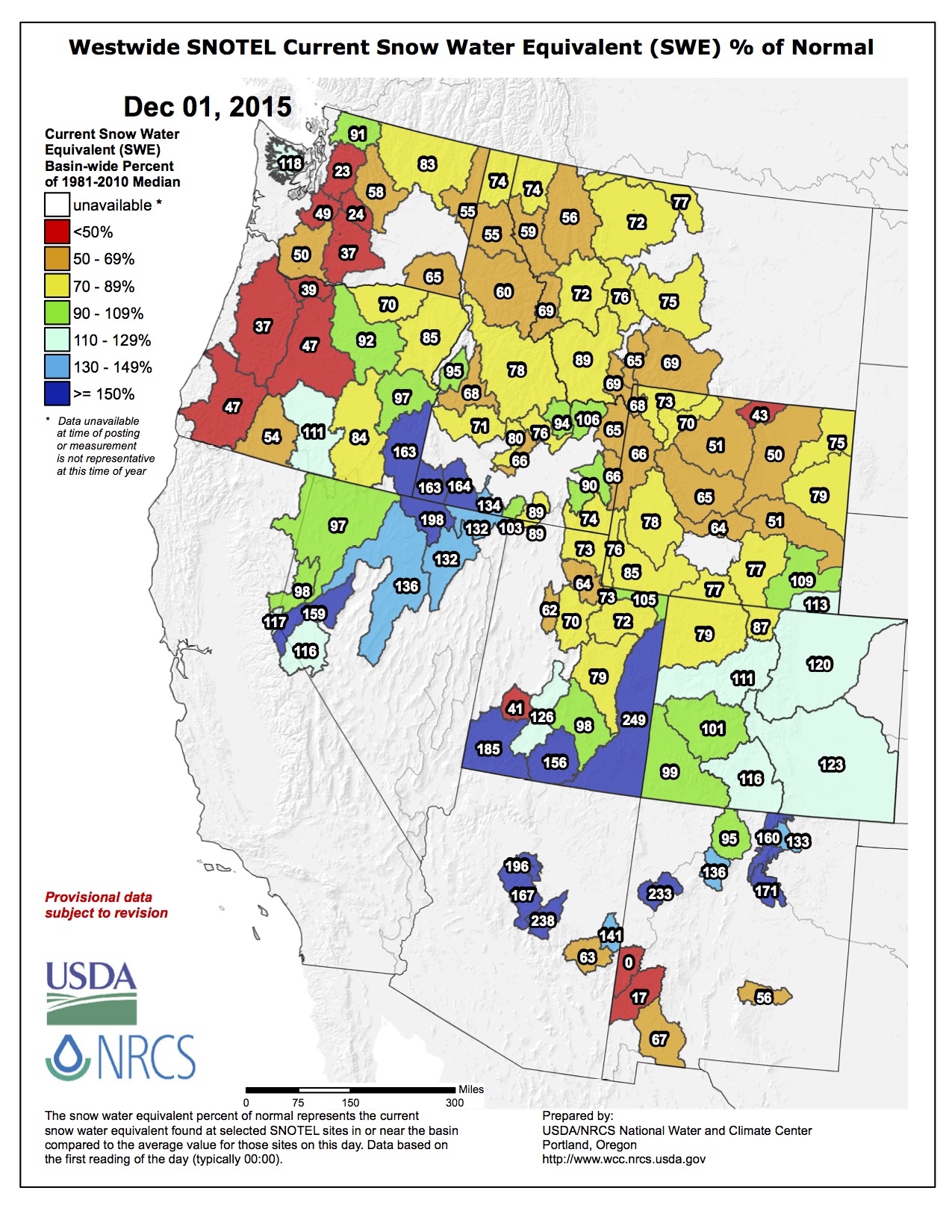 Below is the December 1st Westside SNOTEL map from the Natural Resources Conservation Sevice.