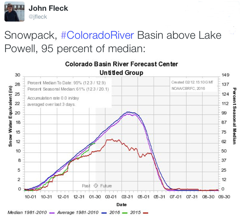 A few more rounds of heavy, wet snow or rain in the right places between now and April could push the forecast for the Colorado River above the 30-year average, he said, though even a normal year would be welcome.