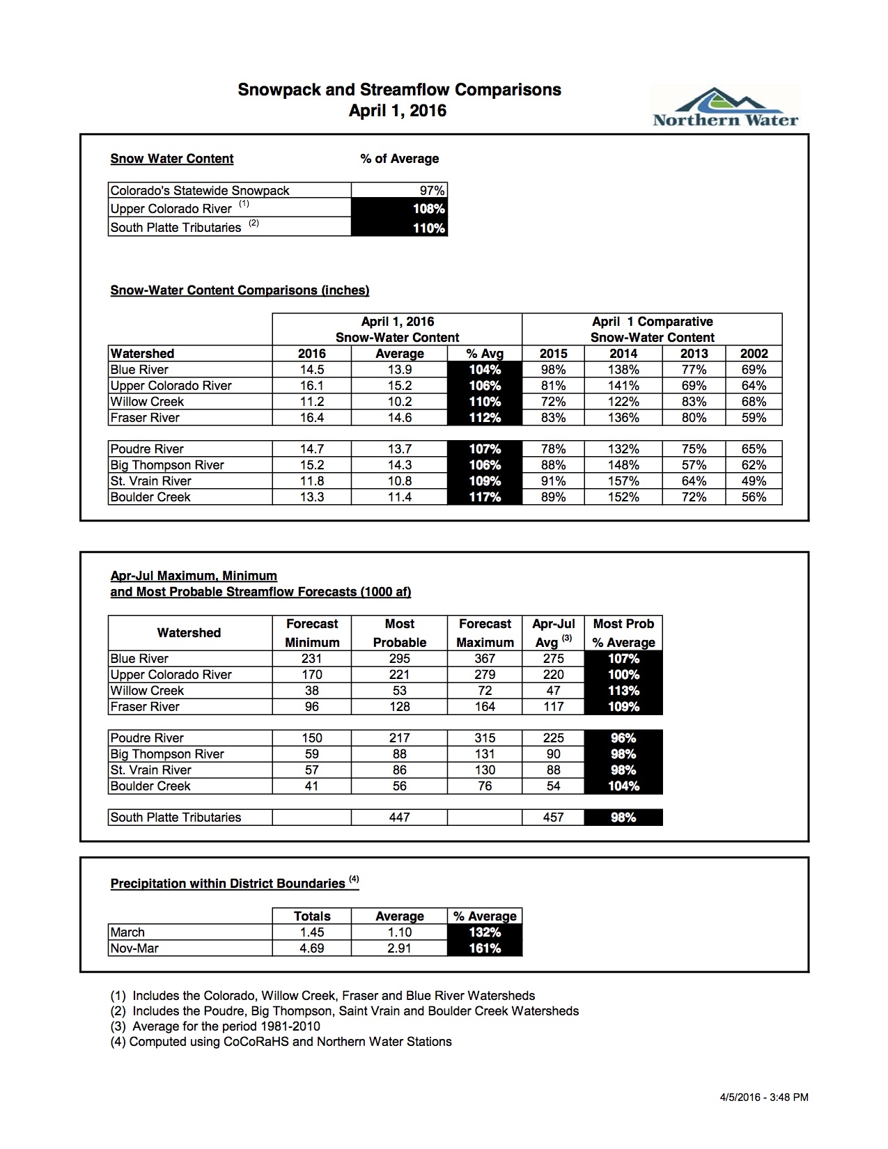 For the next 5 days (April 7 – 11, 2016) should feature a swath of moderate to heavy rain from central Kansas and eastern Oklahoma northeastward through the Ohio Valley, lower Great Lakes region, the Appalachians, and the Northeast. Totals are forecast to range from just under an inch to near 2.5 inches, with the largest amounts expected in and around central and southern Missouri, and across New England. Moderate precipitation is also anticipated in much of California, with at least half an inch forecast everywhere but the southeastern deserts and west-central sections of the state, and locally 1.5 to 3.5 inches in the higher elevations statewide. The southern half of Nevada and the higher elevations of Arizona are expecting 0.5 to locally 2.0 inches. In contrast, little precipitation is expected in the northern tier of the West and Rockies, along the High Plains, in the northern Great Plains, and near the Gulf of Mexico. Light to moderate amounts (up to several tenths of an inch) are expected elsewhere. It should be a warm 5 days for most of the Plains and central and northern sections of the Far West, with daily maxima averaging 10F to 15F above normal in the northern Intermountain West and adjacent Rockies. Conversely, unseasonably cold weather should dominate the East, with temperatures on average topping out 10F to 15F below normal from the upper Mississippi Valley, Great Lakes, and Northeast southward into the Ohio Valley, central Appalachians, and mid-Atlantic region.