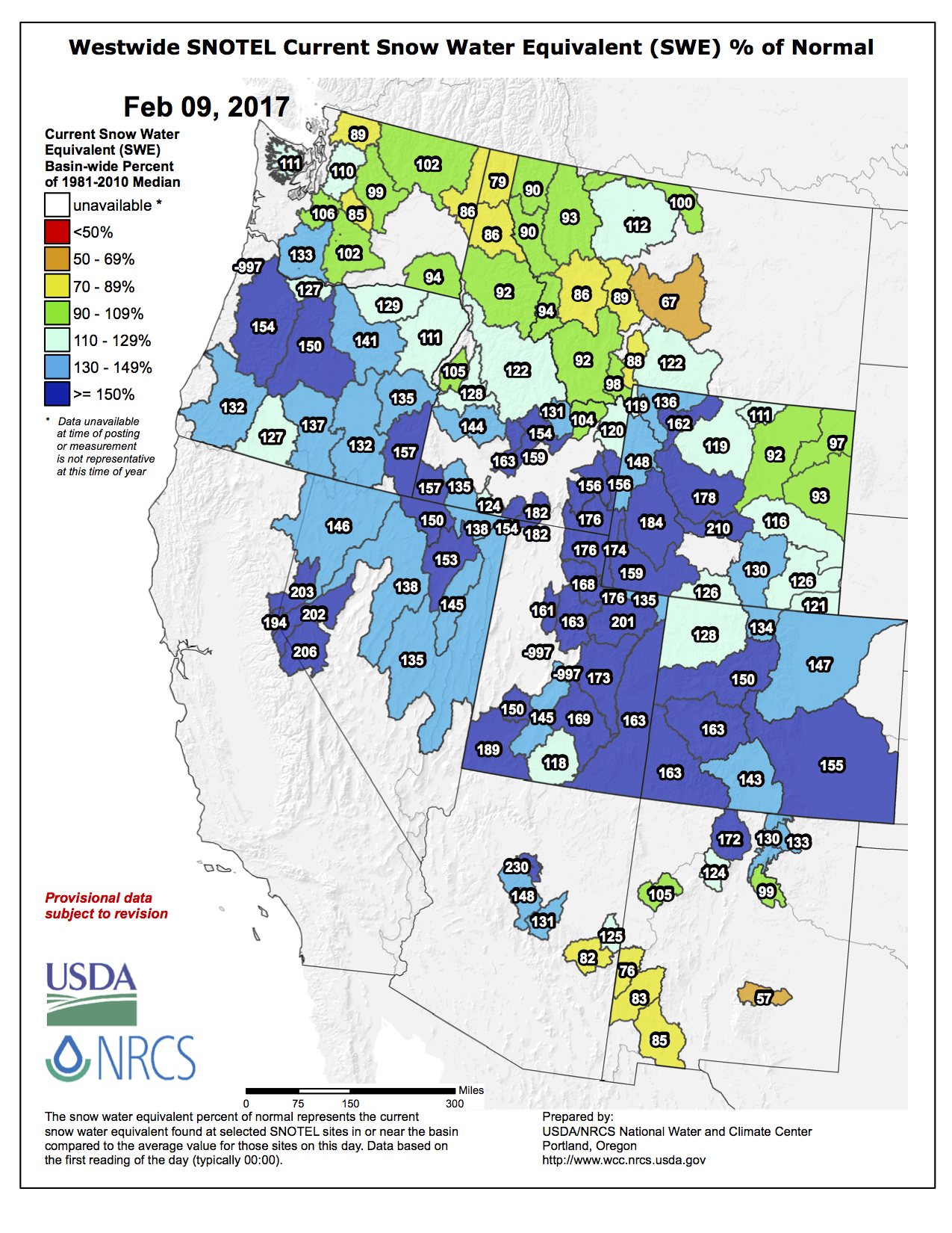 Additionally, reservoir storage looks strong, the South Platte and Colorado river basins were at 105 percent of average reservoir storage on Feb. 1.