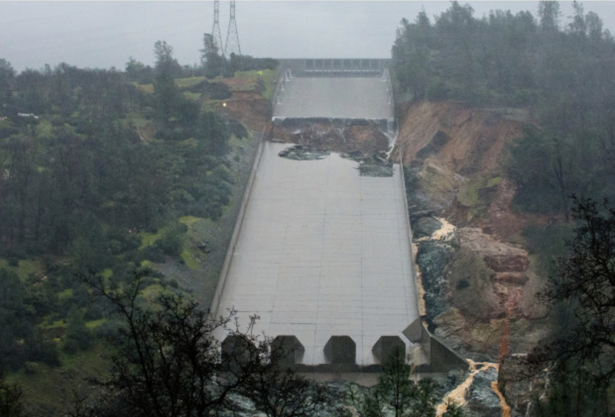 Oroville Dam spillway collapse. Photo credit Californian Department of Water Resources.