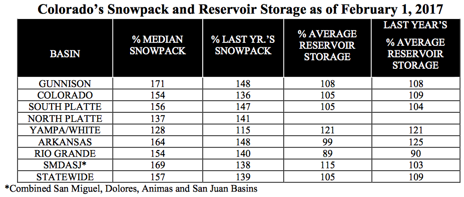 he Natural Resources Conservation Service (NRCS) recently released its Colorado Water Supply Outlook Report, based on Feb. 1 figures, which marks the second comprehensive update for Colorado since the “2017 water year” began on Oct. 1.