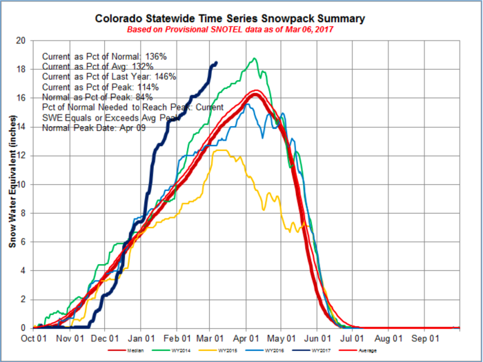 Statewide Time Series snowpack summary March 6, 2017 via the NRCS.