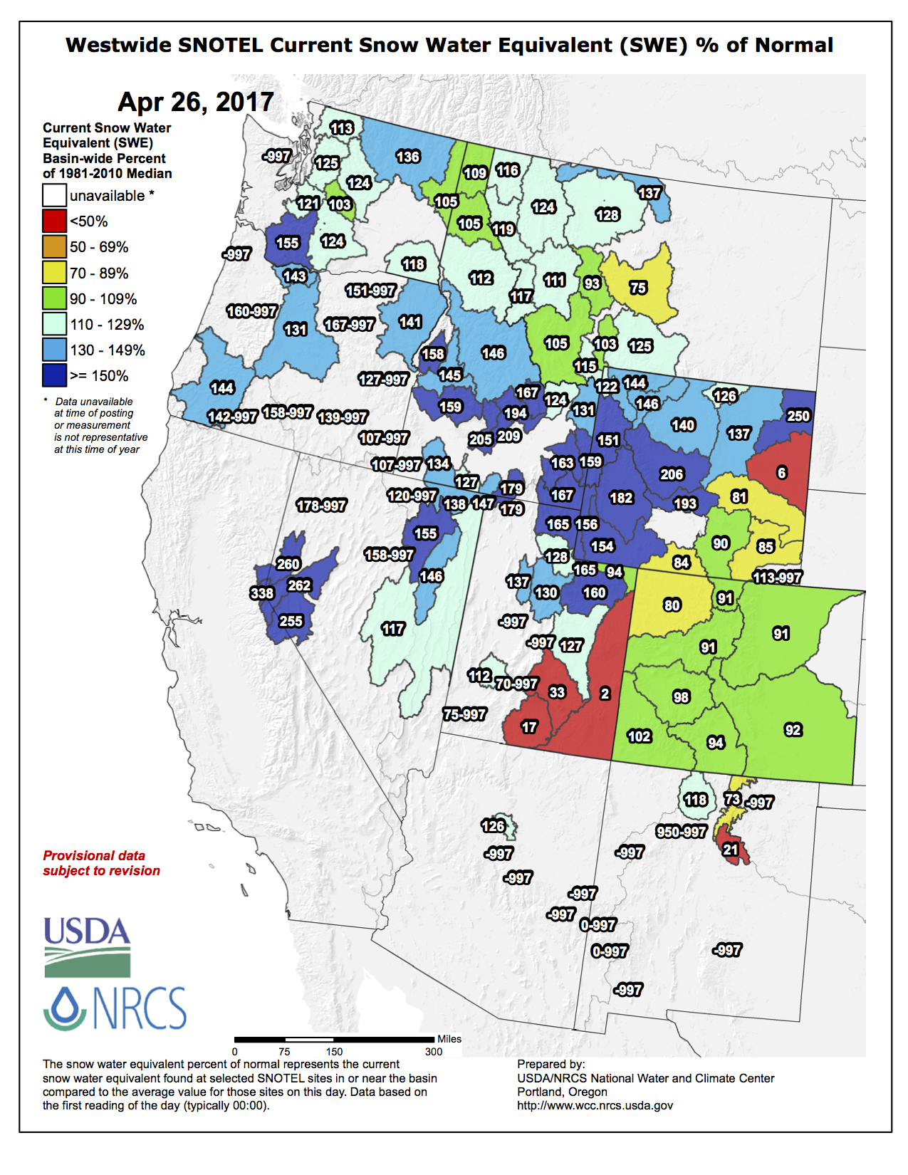 On average for April 25, there is 49.3 inches of snow equivalent water at the Buffalo Pass monitoring station, meaning snowpack is 85 percent of average, according to the Natural Resources Conservation Service.