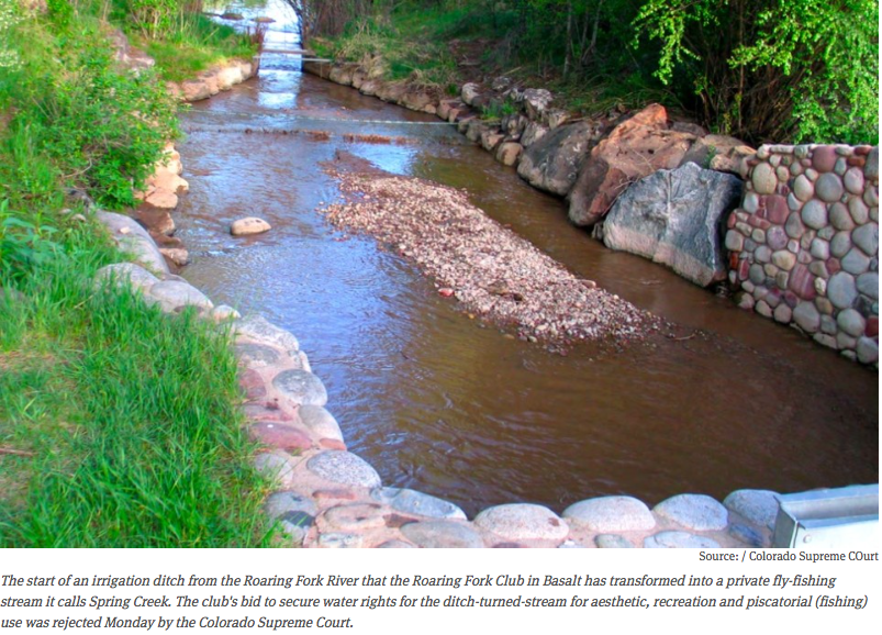 The legislature, this session, passed a bill in response to the 2015 Colorado Supreme Court decision in the case of St. Jude’s Co. v. Roaring Fork Club LLC. That decision held that direct diversions of water from a river to a private ditch for “aesthetic, recreational and piscatorial” purposes are not “beneficial uses” under state water law.