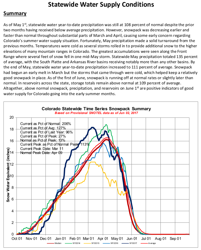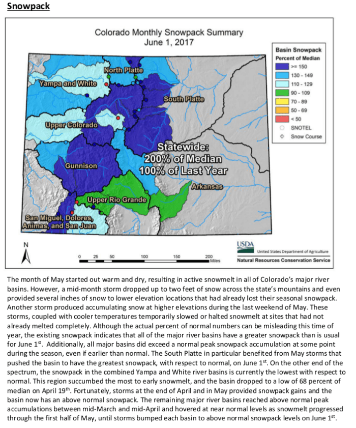 In water circles, May 2015 came to be known as Miracle May due to the huge boost in snowpack storms that month provided in Colorado. This Mayās snow also left the state in decent condition as the snowpack season winds down…