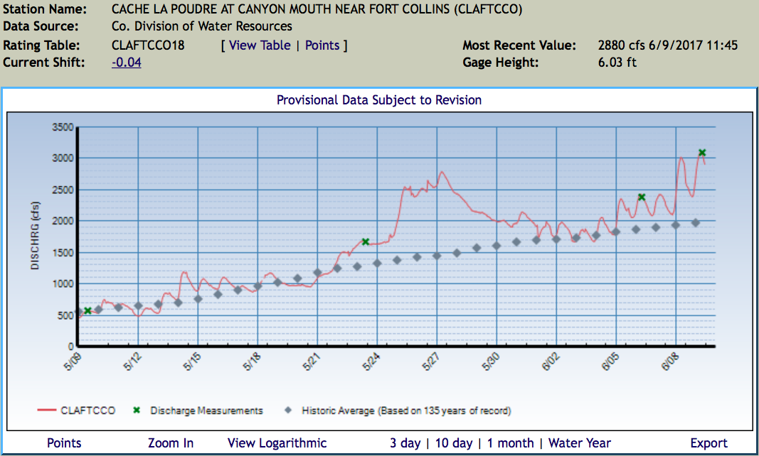 South Platte River Basin High/Low graph June 7, 2017.