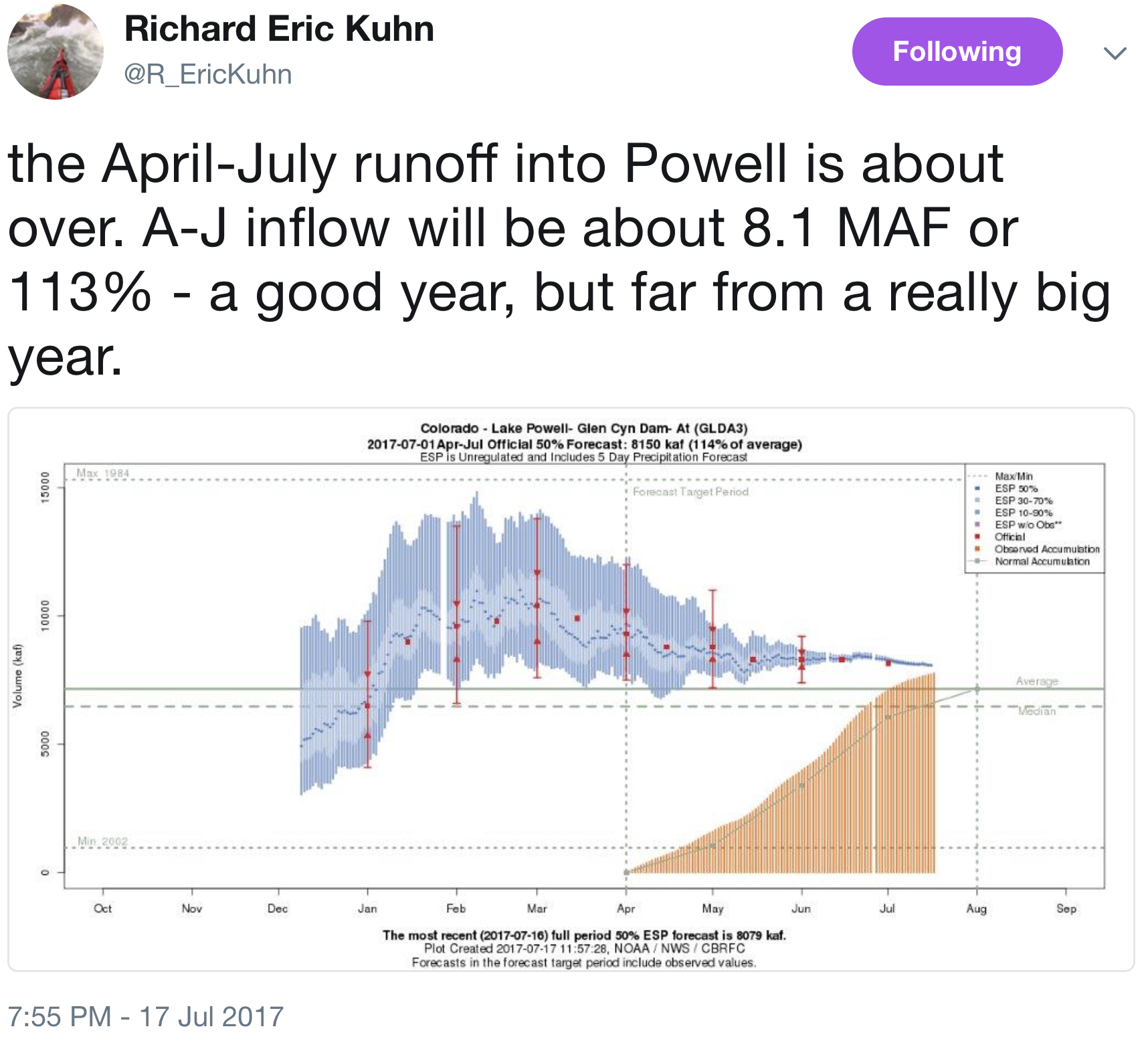 2017 #ColoradoRiver water year #runoff into #LakePowell is about over #COriver
