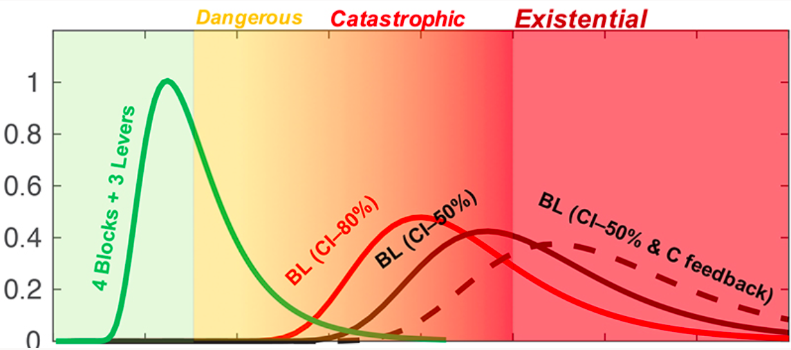 The scientists term warming probability of five percent or less as a “low-probability high-impact” scenario and assess such scenarios in the analysis “Well Below 2°C: Mitigation strategies for avoiding dangerous to catastrophic climate changes,” which appears today in the journal Proceedings of the National Academy of Sciences.