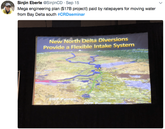 Hasencamp stressed the importance of solving California’s Bay Delta problem. The proposed project will cost $17 billion and firm up the water supply from Northern California: