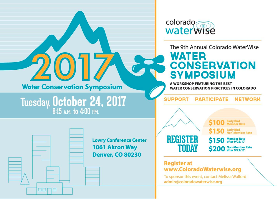 Join us for the 9th Annual Colorado WaterWise Water Conservation Symposium in Denver, Colorado! We have a great program being created that will appeal to many audiences.