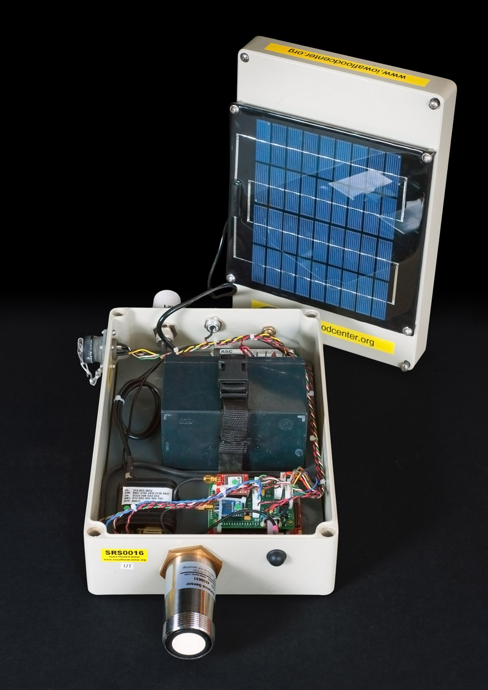 The sensors were developed as a student project to design an affordable, yet effective way to measure stream and river heights. The sensors are solar powered and attached to the side of bridges. A sonar signal is used to measure the distance from the water surface to the sensor and data is transmitted via a cell modem to IFIS where the data is publicly available.
