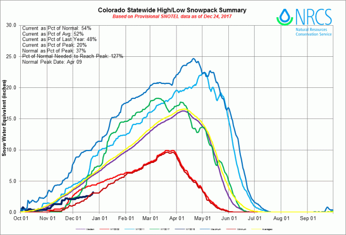 #Snowpack news: Nice bump for the statewide total through yesterday morning, sorry S.W. #Colorado