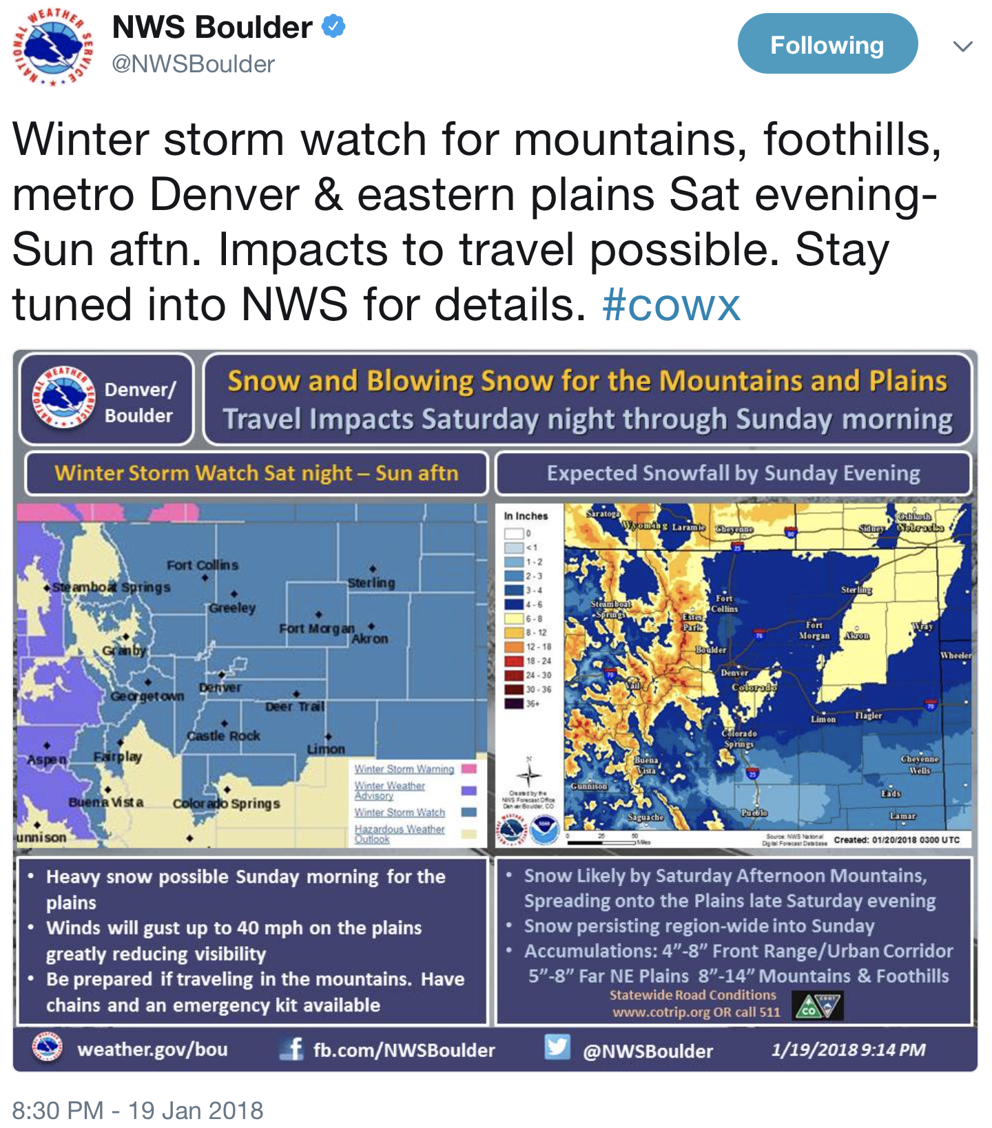 “Experts Warn About Dry Conditions in Colorado” ā January 19, 2018 @H2ORadio