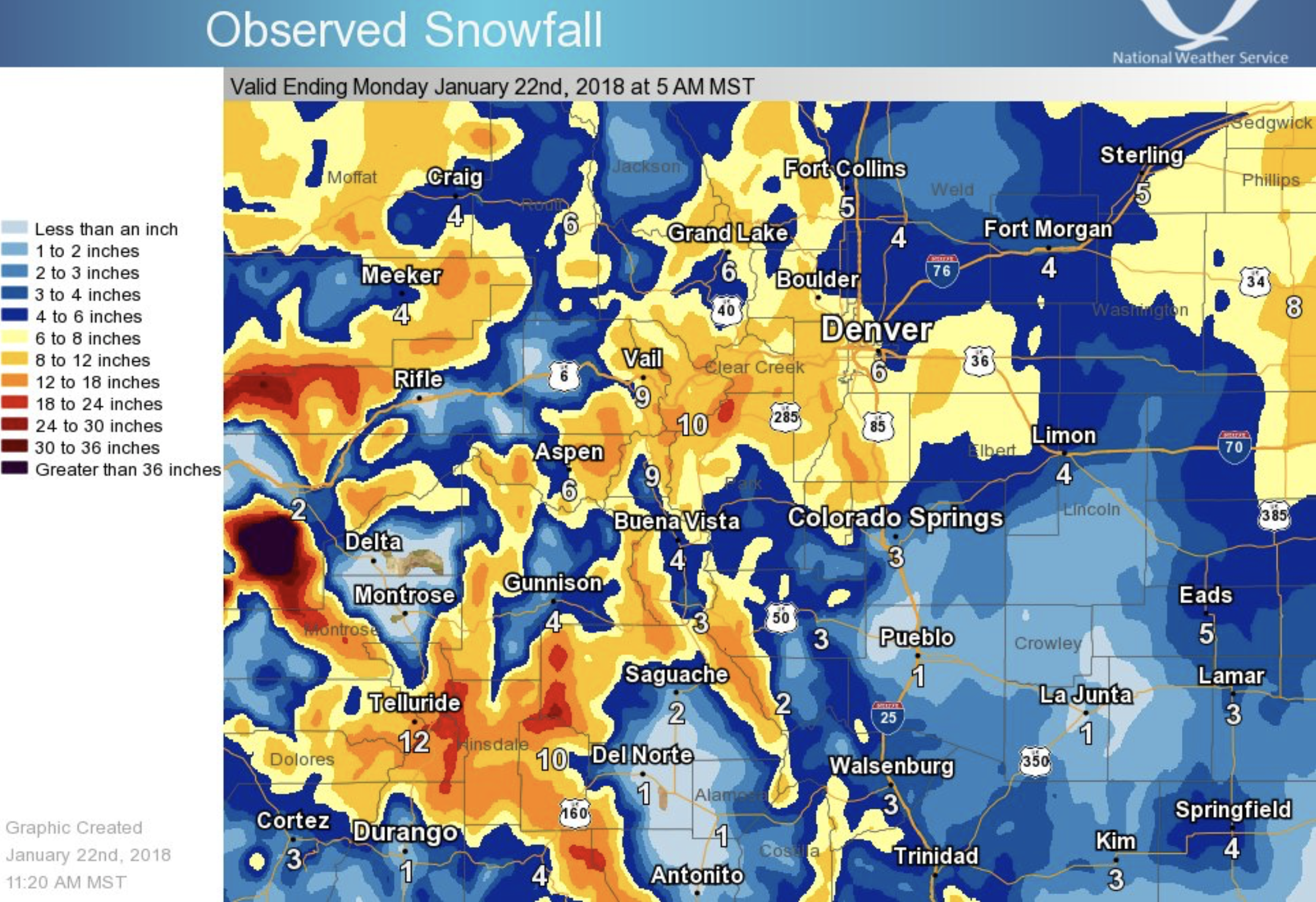 Meteorologist Julie Malingowski of the National Weather Service in Grand Junction said the high country could see an additional 1 to 3 inches of snow Sunday afternoon before the storm moves out of the region.
