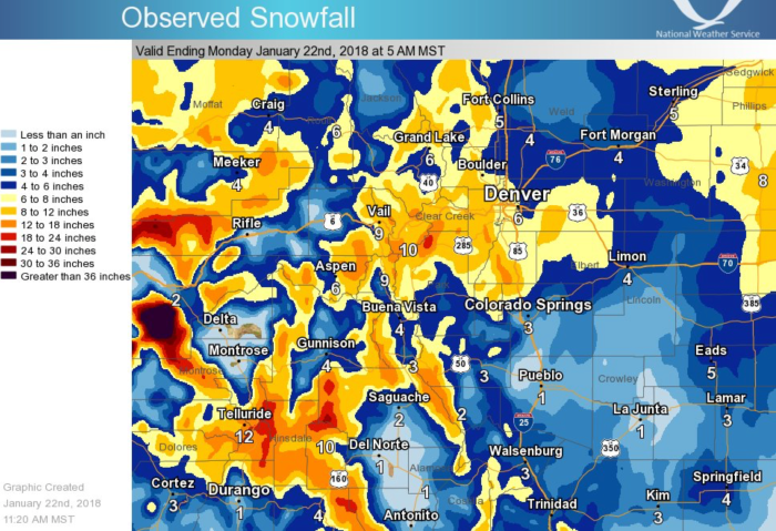 Statewide basin-filled snowpack map January 22, 2018 via the NRCS.
