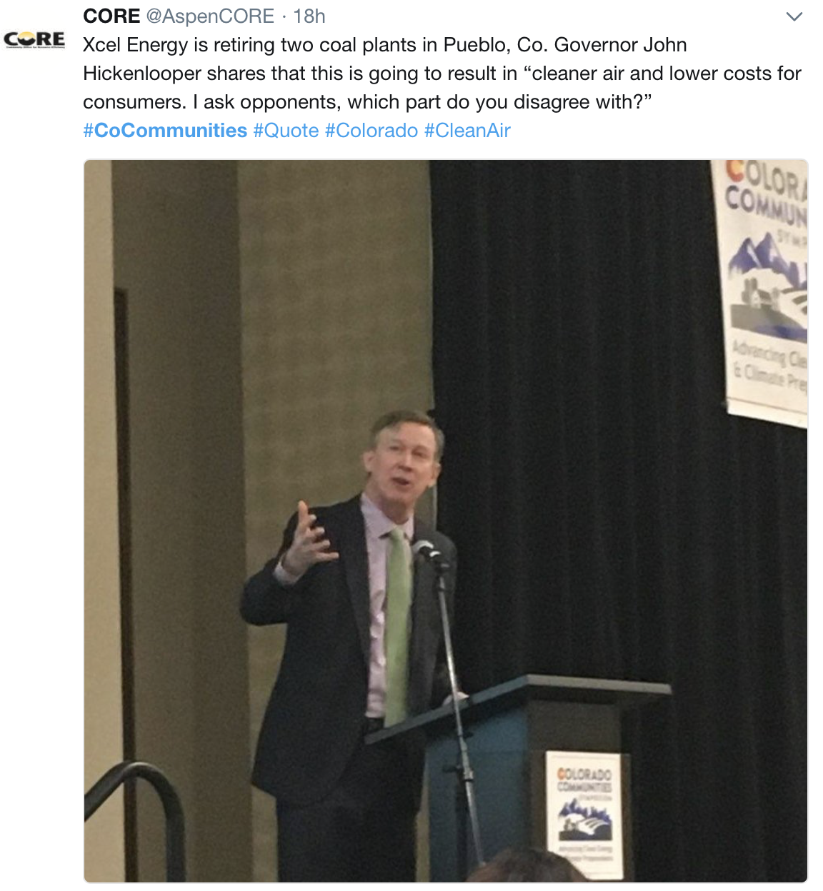 He mentioned the proposal to shut down two coal-fired power plants in Pueblo owned by Xcel Energy. The move would reduce air pollutants without a cost increase to Xcel customers in Pueblo, he and David Eves, the president of Xcel Energy Colorado, said.