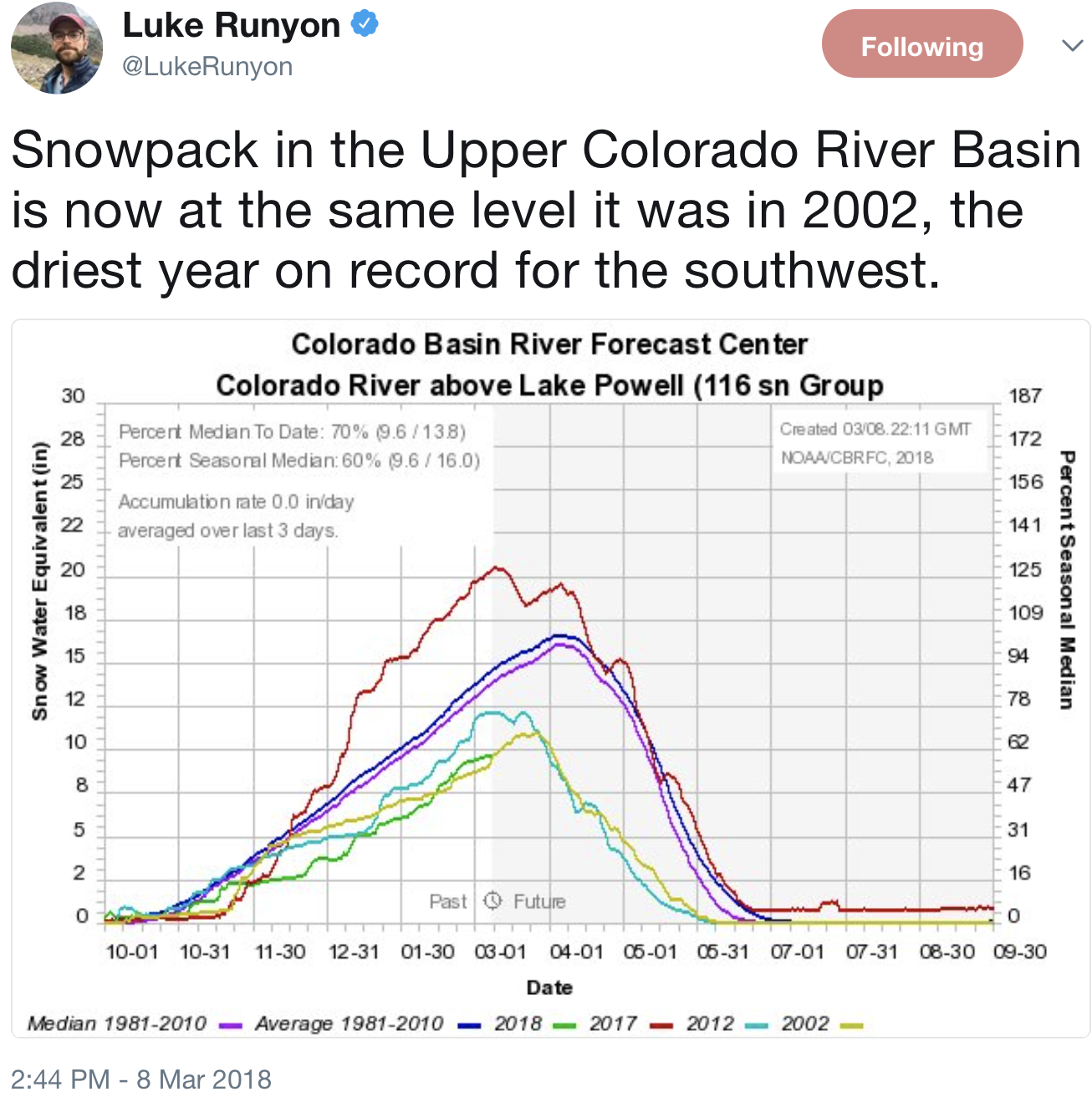 āIt doesnāt look good,ā Whitehead said. āHopefully we get some more moisture. In the past, weāve had late spring storms come in and bring snowpack up considerably.ā