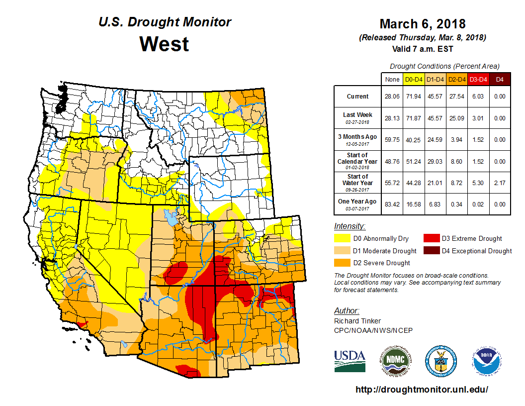 “Pueblo proper has seen at least some precipitation. In February we were above normal, and in January I believe we were very close to normal, … but the southeast plains and especially the southwestern corner of Colorado have been extremely dry over the last three to six months.”