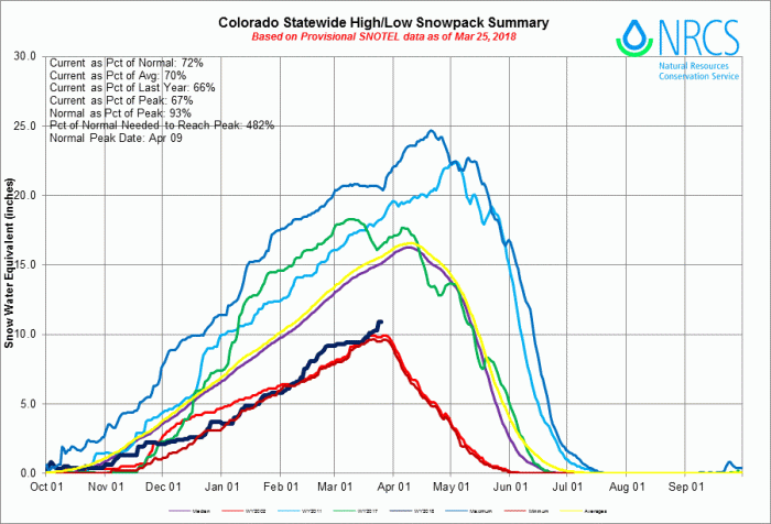 Statewide Basin High/Low graph March 25, 2018 via the NRCS.